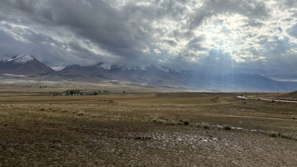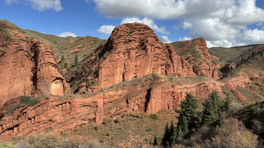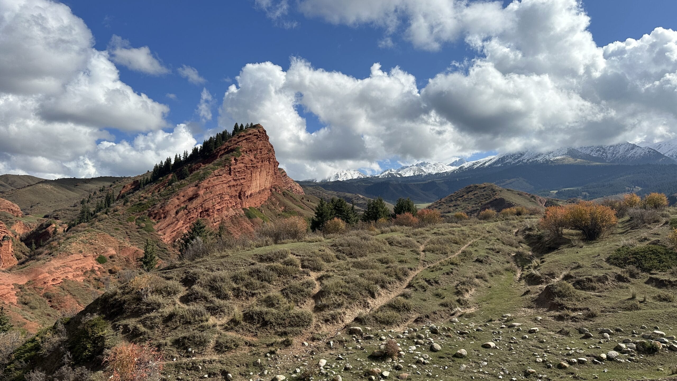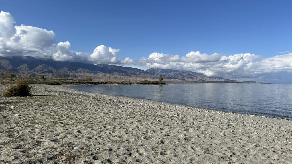 Als Gott die Welt schuf und das Land an die Völker verteilte, kamen die Kirgisen zu spät. Doch er hatte Erbarmen und gab ihnen einen Teil seines Paradieses ab. So zumindest die etwas selbstironische Legende. Doch bei der Fahrt auf 1600 Meter über Meer rund um den zweitgrössten Bergsee der Welt, dem Yssykköl-See, wird klar, dass das nicht von ungefähr kommt: Das Wasser funkelt in der Sonne, dahinter wechselnde Berglandschaften. Liebliche Lehmberge, rote Sandsteinfelsen und weisse Schneeberge. Der Yssykköl-See ist eingekesselt zwischen zwei Bergketten – nördlich der Kungej-Alatau und südlich der Terskej-Alatau mit Bergspitzen, die viereinhalbtausend Meter in die Höhe ragen.