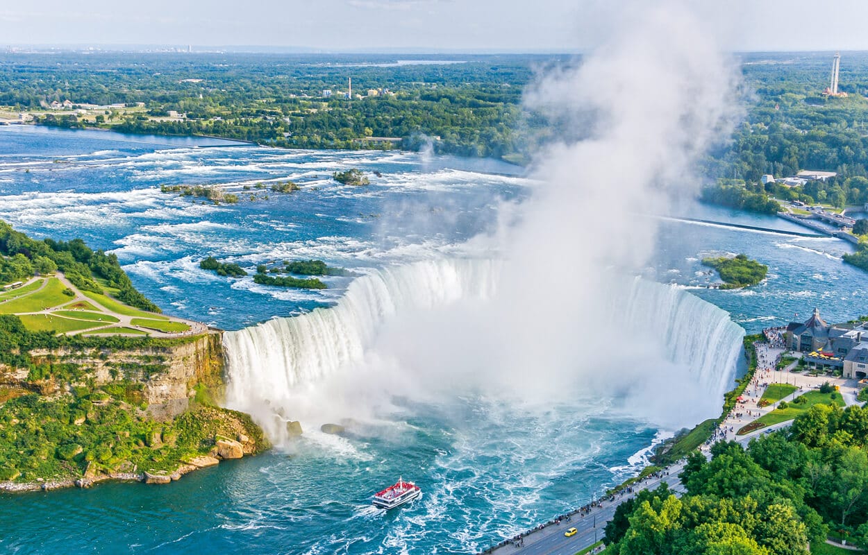 Ein weiterer Höhepunkt der Ostkanada-Rundreise sind die Niagara-Fälle. In der Sprache der Ureinwohner bedeutet Niagara «donnerndes Wasser». Und der Name hält, was er verspricht! So hört man die Wasserfälle, die eine natürliche Grenze zwischen Kanada und den USA bilden, schon lange bevor man sie sieht. Kein Wunder – pro Sekunde stürzen über zwei Millionen Liter Wasser in die Tiefe. Der Anblick der gewaltigen Wassermassen, die wie flüssiges Glas über die Fallkante rauschen, ist ein Naturschauspiel der Extraklasse. Auf einem Boot nähern Sie sich durch die Gischt der tosenden Kaskade – ein einzigartiges Erlebnis! Auge in Auge mit der Ehrfurcht einflössenden Wasserwand kommt man sich als Mensch ziemlich klein und nichtig vor.