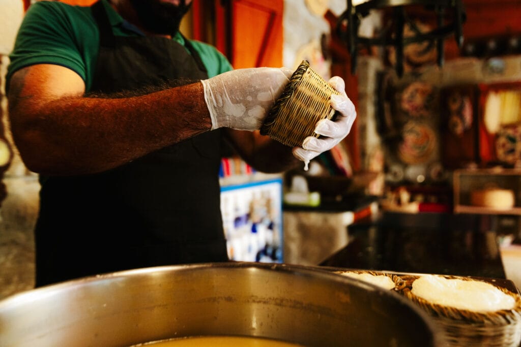 Interessierte aus den fernsten Ländern finden heute den Weg zu Korbflechter Petros ins beschauliche Bauerndorf Choirokoitia im hügeligen Hinterland von Zyperns Südküste. Sein Museum und Atelier liegen direkt neben dem einstigen Zuhause seiner Grosseltern. Dicke Steinwände halten im Haus aus dem Jahr 1850 die Räume im Winter warm und im Sommer kühl. Seine Gäste bewirtet der Gastronom Petros im grünen Innenhof und bringt ihnen neben der Korbflechtkunst auch die zypriotische Kulinarik näher. Seine Spezialität: Halloumi. Er stellt den weltbekannten Käse nach dem Rezept seiner Grosseltern her und verwendet selbstgeflochtene Körbchen aus Schilf, um die Käsemasse in Form zu bringen.